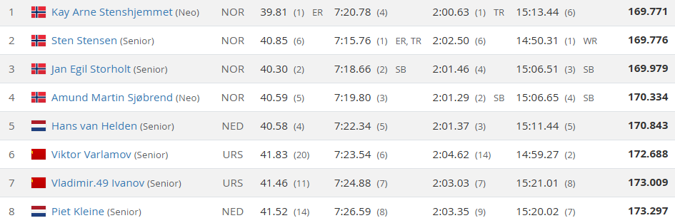 Under VM på Bislett senere i 1975 gikk det ikke like godt for de norske løperne. Riktignok ble det også her tre norske distanseseire – Storholt på 500 m, Stensen på 5000 m og Sjøbrend på 1500 m. Men verdensmesteren ble nederlandsk – Harm Kuipers, fulgt av to sovjetrussere – Vladimir Ivanov og Jurij Kondakov. Kuipers hadde overraskende lagt opp etter sin beste sesong og utgjorde derfor ikke noe trussel foran OL-sesongen.